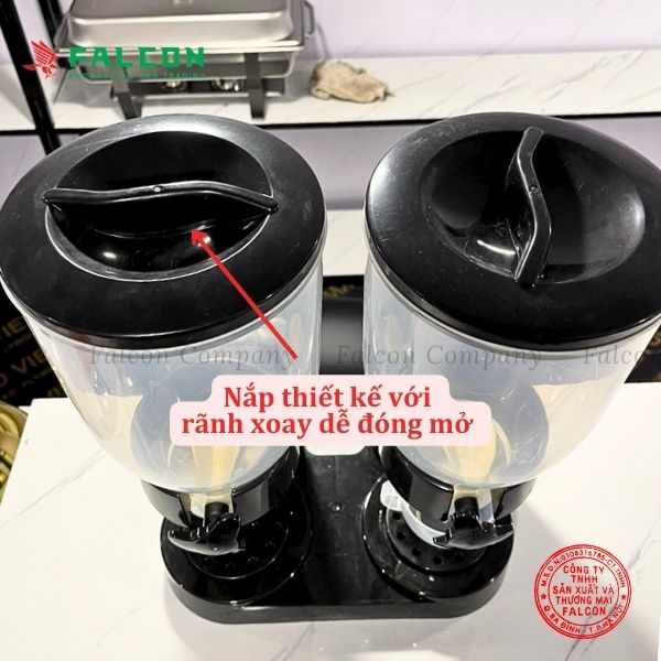 => Bình Đựng Ngũ Cốc 2 Ngăn là sản phẩm lý tưởng để phục vụ và bảo quản ngũ cốc một cách chuyên nghiệp và thẩm mỹ. Với thiết kế hiện đại, chất liệu cao cấp và tính năng tiện lợi, đây chắc chắn sẽ là một sự lựa chọn hoàn hảo cho mọi không gian tiệc buffet hoặc gia đình.