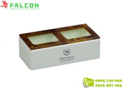 In ấn logo thương hiệu trong bộ đồ là không thể thiếu được bởi nó cho 1 cái nhìn tổng thể hơn về khách sạn cũng như quảng bá thương hiệu của khách sạn được nhiều người biết đến. Bộ đồ dùng resin Sheraton được khắc logo thương hiệu Sheraton – là khách sạn nổi tiếng chính vì những chi tiết thường như đơn giản nhưng lại đóng vai trò quan trọng trong việc đưa thương hiệu của khách sạn ra thị trường quốc tế.