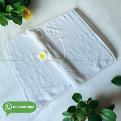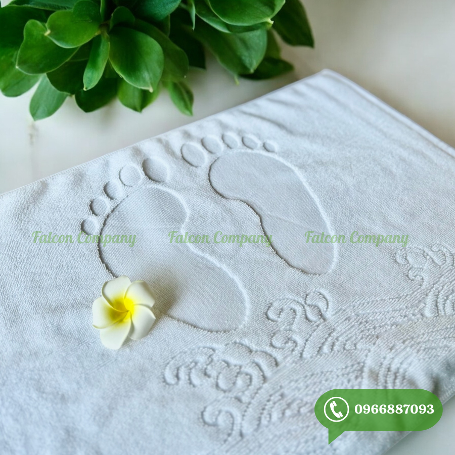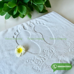 Khăn lau chân (3 sao- 5 sao) là một loại khăn được sử dụng khá nhiều khi đi lại trong phòng hay ra vào phòng tắm. Dù là khách sạn có quy mô kinh doanh như thế nào thì đều được trang bị loại khăn cotton phòng tắm này. Thường có độ dày và thô hơn các loại khăn khác. Có tác dụng lau sạch chân, thấm hút nước, chống trơn trượt khi di chuyển. Như công dụng của nó thì khăn lau chân thường được đặt tại các vị trí thuận tiện để lau chân như trước cửa phòng phòng, trước của phòng tắm, dưới giường. Khăn có kích thước: 45x65cm, trọng lượng: 300g( đối với khăn có sẵn dệt hình bàn chân); kích thước: 45x75cm, trọng lượng: 310g(đối với khăn thêu, dệt theo yêu cầu). Chất liệu cotton 100% bông mềm, cao cấp, tiêu chuẩn xuất khẩu.