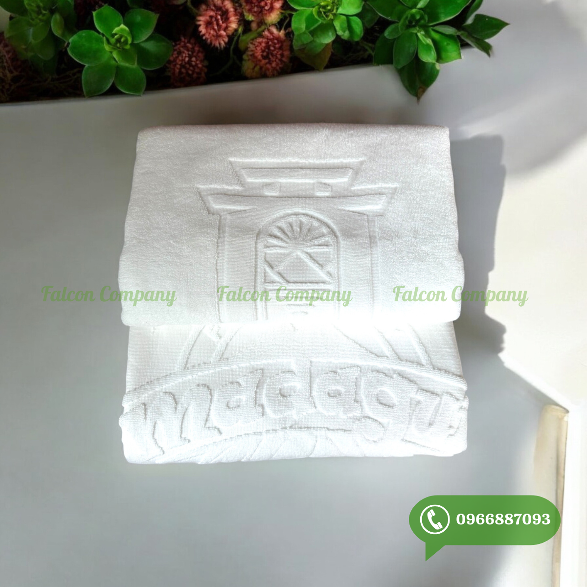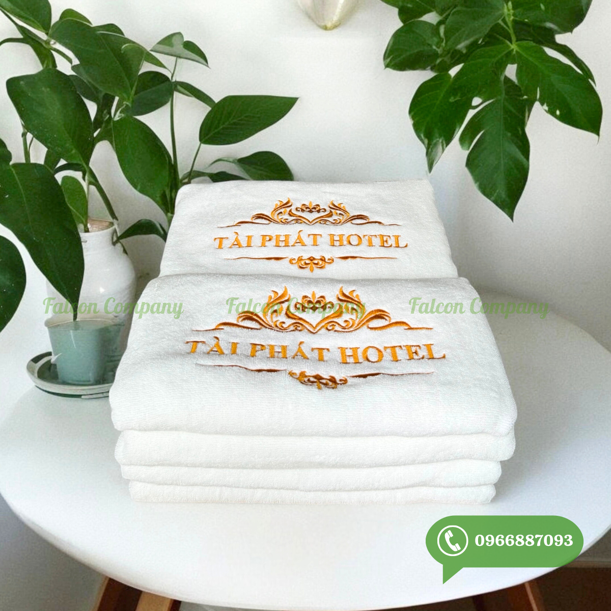 Ngoài những công dụng như đã kể trên những chiếc khăn phòng tắm khách sạn cũng như là vật dụng trang trí cho căn phòng thêm bắt mắt. Nó thể hiện sự tiện nghi, chăm sóc cho khách hàng cũng như chất lượng phục vụ. Vì vậy việc lựa chọn chất lượng, màu sắc phù hợp luôn được cân nhắc kỹ càng. Falcon còn nhận thiết kế thêu, dệt nổi logo trên từng sản phẩm theo yêu cầu của từng khách hàng. Tạo điểm nhấn, để lại ấn tượng riêng cho từng thương hiệu.