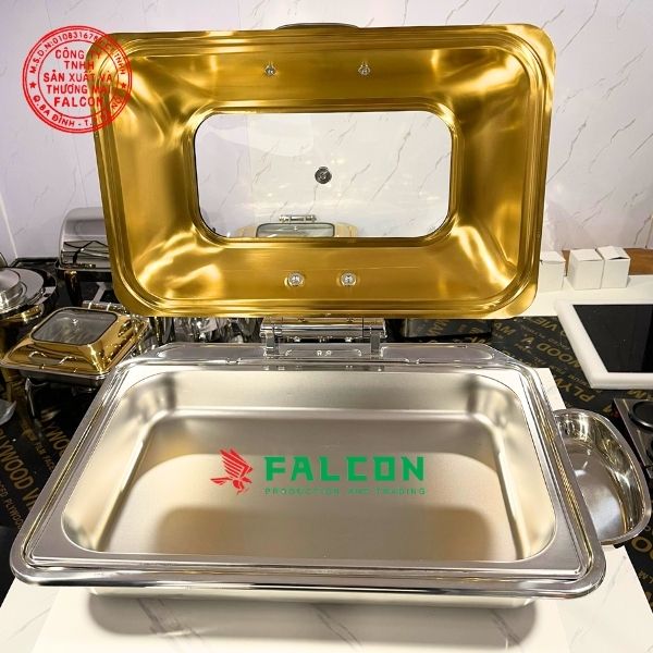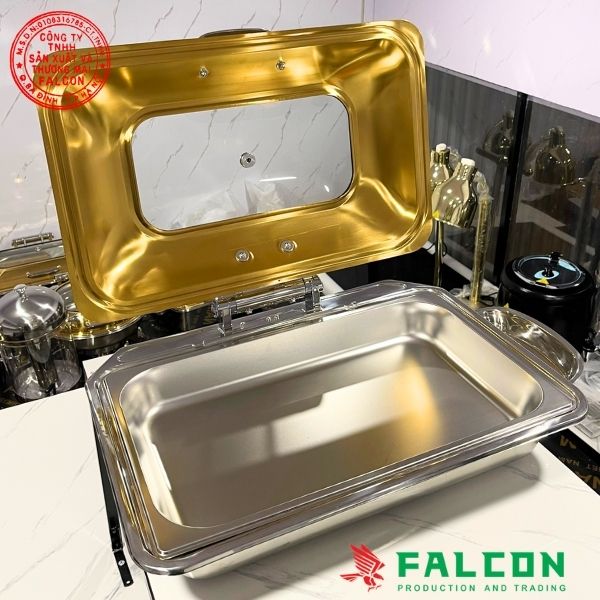 • Dung tích lớn: 9 lít, đảm bảo đủ sức chứa để phục vụ lượng lớn thức ăn trong các bữa tiệc buffet hoặc hội nghị.